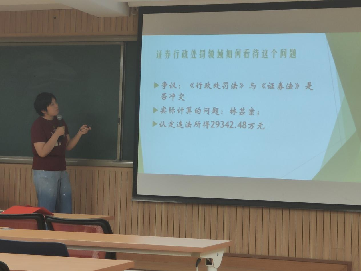 在本次课程中,杨法官首先根据行政处罚法的规定详细介绍了什么是违法所得,接着结合外汇管理领域、银行保险领域和反垄断领域内相关规定介绍了哪些类型的案件中可能涉及违法所得的认定问题。杨法官还提到,70%的当事人会对证券行政处罚案件中违法所得的计算问题提出异议,而在证券监管机关实体败诉的案件中,更有80%的案件与违法所得的计算有关,因此研究违法所得应当如何认定在实务中具有十分重要的意义。同时,杨法官还结合审判过程中办理的真实案件,介绍了目前违法所得认定领域中有争议的一些前沿问题,如违法所得的计算是否需要扣除成本、哪些属于应当扣除的成本、违法所得的拟制计算等,并就上述问题与同学们展开热烈讨论。