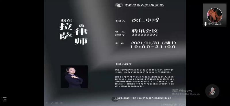 2021年11月21日19点,公司举办2021级本科生“法学专业与法律职业”课程暨新生引航工程系列讲座。本次主题是“我在拉萨做律师”,由公司2020届本科优秀毕业生次仁卓玛主讲,ylzz总站线路检测中心全体2021级本科生参加。