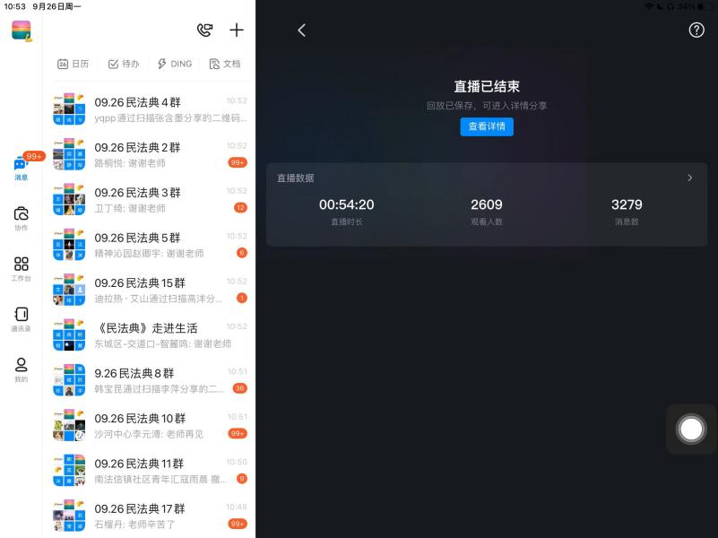 此次宣讲活动,借助钉钉直播宣讲的新模式,使民法典走到群众身边,走进群众心里。不但加深了社区居民对相关法律法规及政策的认识和了解,促进了居民们法治素养提升,而且有利于引导居民办事依法、遇事找法、解决问题用法、化解矛盾靠法,为社区稳定和发展营造良好社会环境,以实际行动迎接党的二十大胜利召开!