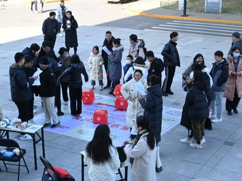 活动开始于寒风凌厉的冬季早晨9点30分,同学们参与活动的热情依旧不减。游戏开始时,由负责引导的同学为参与同学介绍游戏规则,游戏题目主要围绕着我国《宪法》中规定内容展开,包括公民、基本经济制度、国家各个机关等主题。由答题者最初选取起点,作答后再通过掷骰子确定选题范围并作答,每位同学有两次掷骰子的机会,答题结果实行积分制。最后由引导同学根据评分细则为答题同学评分,答题者根据最终得分获得相应奖品。