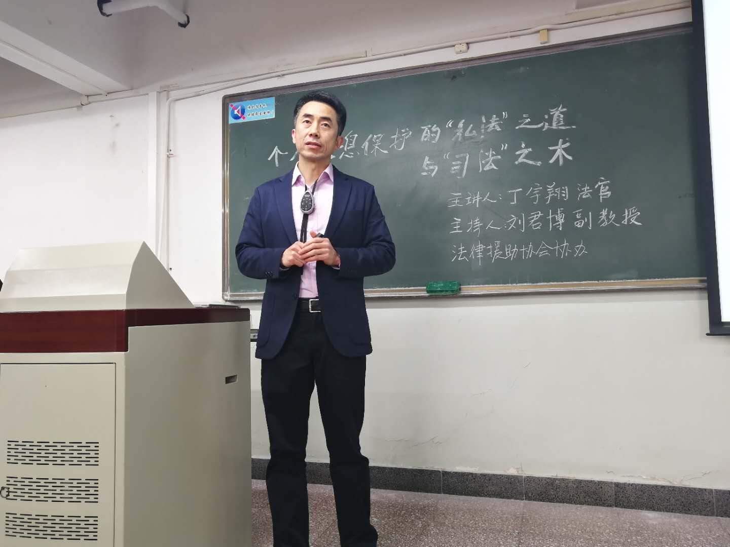 2018年11月5日晚19时,“个人信息保护的‘私法’之道与‘司法’之术”主题讲座在学院南路519教室举行。讲座由北京市第一中级人民法院民二庭副庭长、法学博士丁宇翔主讲。公司副经理李伟副教授和部分ylzz总站线路检测中心本科生、研究生共同参与此次讲座。讲座由公司刘君博副教授主持。本次讲座系民法案例研习一课程的外请讲学活动,受研究生院“研究生课堂嘉宾讲学支持计划”资助。