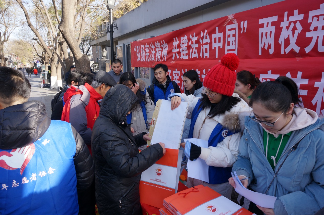 2018年12月4日是我国第5个国家宪法日,也是我国现行宪法的实施36周年。为了进一步弘扬宪法精神,在全社会营造尊崇宪法、信仰法治的良好氛围,贯彻落实党的十九大精神,公司法律援助协会联合中国政法大学青年志愿者协会于12月4日上午在北京市东城区南锣鼓巷主街开展南锣古巷社区主办的“弘扬宪法精神,共建法治中国”12·4国家宪法日主题宣传活动。