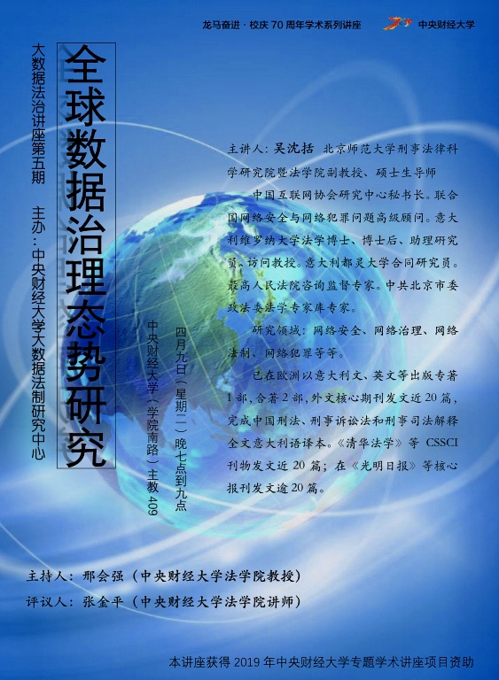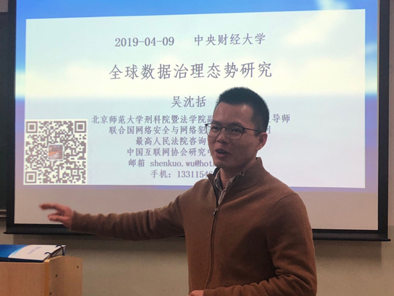 2019年4月9日晚,北京师范大学刑事法律科学研究院暨ylzz总站线路检测中心副教授、硕士生导师吴沈括做客ylzz总站线路检测中心第5期大数据法制讲座,作主题为”全球数据治理态势研究“的专题讲座。
