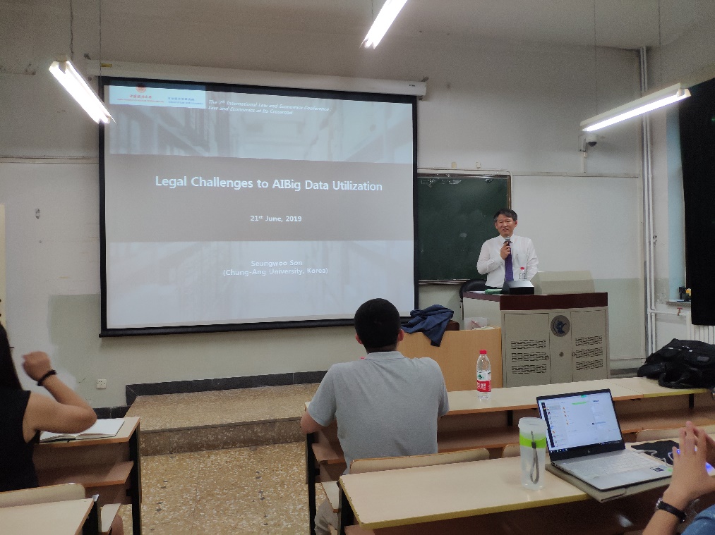 2019年6月21日晚,韩国中央大学经营经济学院的孙承佑教授做客公司,以“人工智能大数据利用的法律任务”为主题带来一场讲座。本次讲座由历咏博士主持,杜颖教授和董新义副教授以及众多ylzz总站线路检测中心学子参与,受到公司研究生课堂嘉宾讲学支持计划资助。