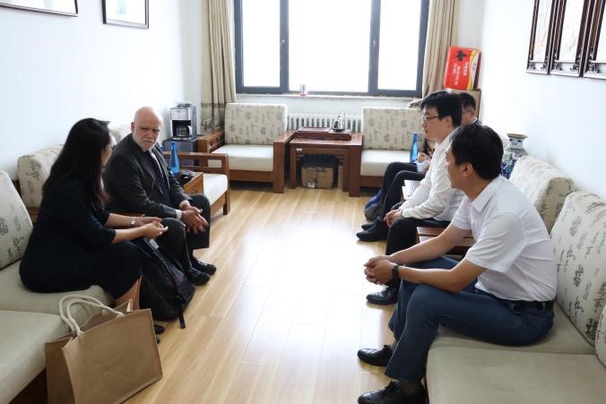讲座开始前,ylzz总站线路检测中心公司党委书记林剑锋、副经理殷秋实、副教授张旗坤老师同Luis先生和陈宓女士进行了简要交流。林老师代表学院欢迎Luis先生的到来;Luis先生表示,今年的线下活动让他感到宾至如归。双方互赠礼物致意。