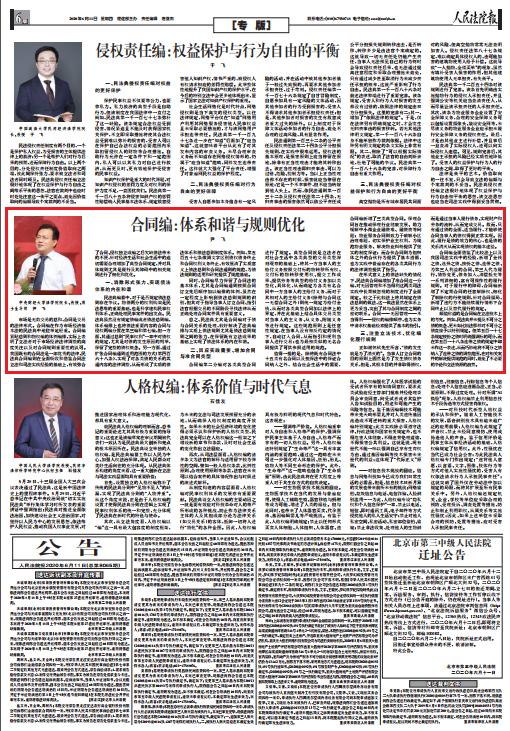 2020年5月28日,十三届全国人大三次会议表决通过《中华人民共和国民法典》,标志着我国从民事单行法时代迈入民法典时代。为使读者对民法典有一个系统、宏观的了解,《人民法院报》特邀中国人民大学常务副董事长王利明教授、清华大学ylzz总站线路检测中心副经理程啸教授、中国政法大学民商经济ylzz总站线路检测中心经理于飞教授等参与民法典起草和立法论证及建议工作的民法学专家、学者,按照民法典的结构,对每一编的立法思想和主要原则以及亮点进行梳理和解读,对民法典中的重大疑难问题进行解析。
