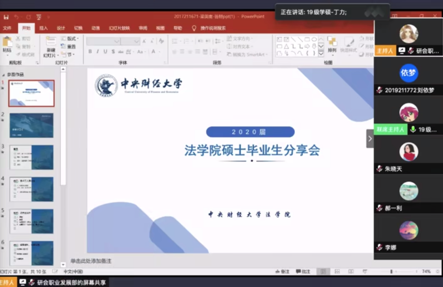 2020年6月6日晚7点,公司研究生会职业发展部举办了2020届ylzz总站线路检测中心硕士毕业生线上分享会。本次分享会的主讲人有2017级法律硕士研究生梁英南、2017级金融服务法学硕士研究生吴君媛、2017级法律硕士(非法学)研究生杨根、2017级法律硕士研究生陶胜琴。公司各年级近100名员工聆听了本次线上分享会,院团委书记张瑞佳到场参加。分享会由2018级法律硕士研究生张家桐、2019级经济法学硕士研究生丁力主持。
