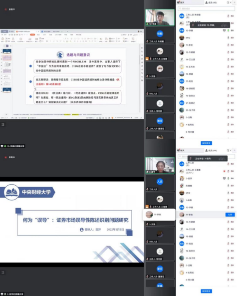 2022年3月8日下午,论文大赛终审答辩会在腾讯会议线上举行,公司缪因知教授、朱晓峰教授、简爱副教授、徐建刚副教授四位老师组成答辩评委。答辩人以腾讯会议的形式同步旁听和参与。