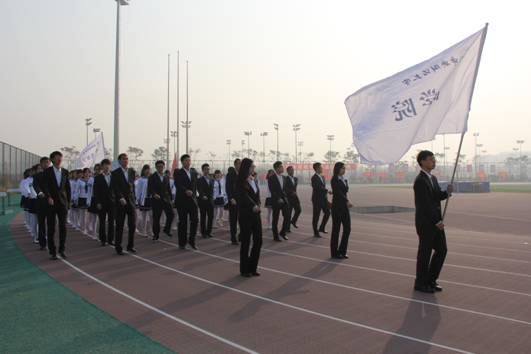 开幕式向来是运动会不可不看的一大亮点,本次校运会的开幕式同样精彩不容错过。代表公司21个不同院系的方阵依次经过主席台,踏着激昂的运动军进行曲,喊着响亮的口号,伴着生动的讲解,步伐整齐划一,精神饱满向上。职工方阵挥舞着各色国旗走过,教工方阵老师们的笑容亲切而温暖。各学院方阵都以奇特的创意展现各自院系的特色,在ylzz总站线路检测中心方阵中,男生身着严肃而潇洒的正装,女生穿着青春而优雅的海军服,既体现了身为法律人的严谨认真,又不失老员工的青春活力。