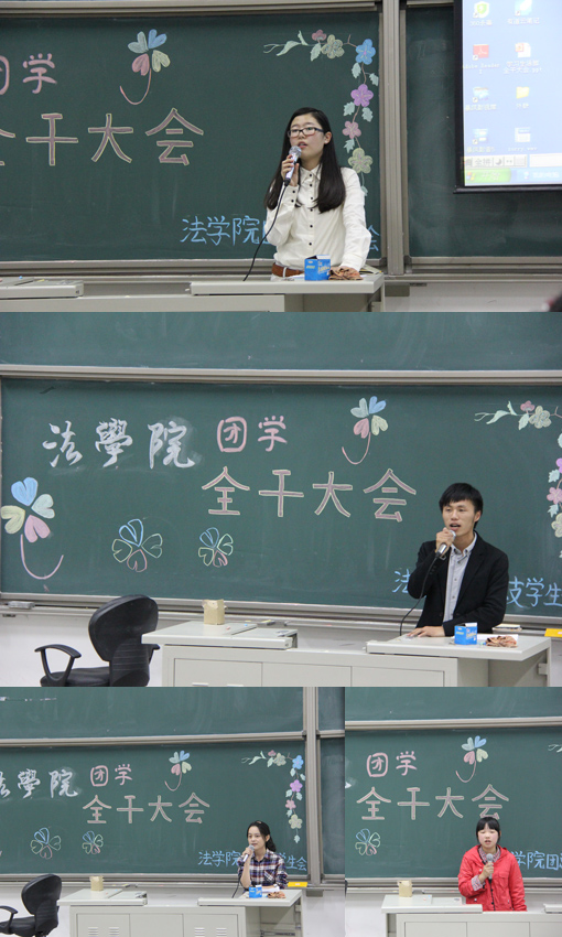 晚上六点半,大会在主持人现任团总支副书记毕钰同学简短有力的开场白中拉开序幕。团总支书记李杰老师就各部门的工作性质以及前段时间各部门的工作做了总结。随后,新老干事代表上台发言,秘书处12级新干事沈安琪同学表达了自己对团学的热爱,而团宣11级干事黄艺灵同学则在欢乐生动的言语中,给新干事们以真诚地建议。