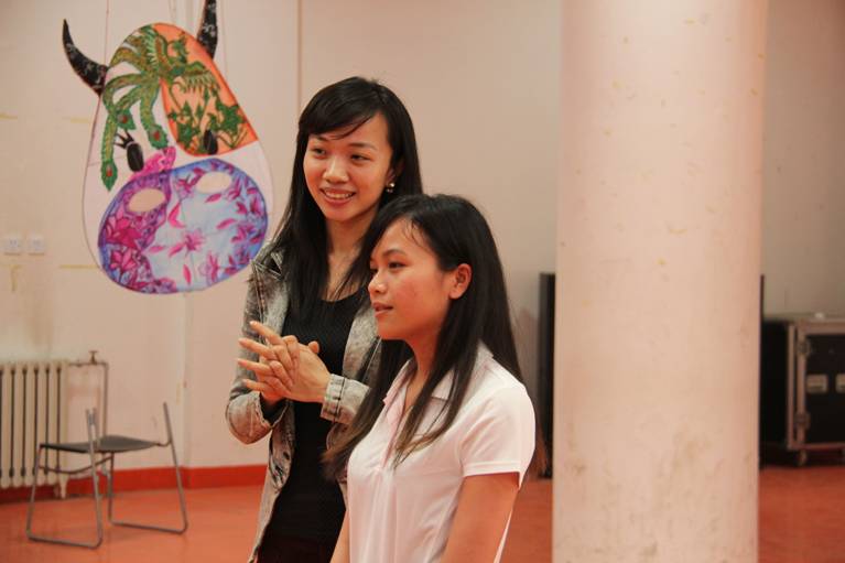 毕业于北京舞蹈学院的李彦君老师倡导“舞”声的言说,即身体与心灵的对话。在课程正式开始之前,她以韵律十足、节奏明快的JAZZ音乐为伴乐,带领同学们轻快自然地舞动身体,从脚的步点到腰的摇摆,再加上手臂辗转律动。短短十几分钟的开场热身,便让原本拘谨约束的女生从心底打开了自我,全身心地融入进这堂与众不同的形体课程之中。员工们和老师绕着偌大的橙色大厅,自由洒脱又无比和谐统一地迈着欢快的步子,牵手围成了一个大圈。随着伴乐渐入轻柔,李老师又带领员工舒缓自己的身体,对先前略微激烈舞动后的身体进行调整放松。在这一部分的教学中,李老师旨在让员工认识自己的身体,体验身体之韵,探索心灵之舞,挖掘自己身体动作的能动性来增进身体与自我察觉,以更好地发挥无声的肢体语言,使情感的表达充分阐释、动态观察的灵敏度充分提高,最终达到用无声的肢体语言来表达自己心灵最真实的感受。