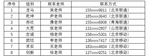 公司初步通过随机方式完成复试考生分组,目前冠以如下组名。接下来,复试秘书老师在资格审查、模拟复试、复试过程中通过手机联系大家。现将各位老师联系方式公布如下,与各位考生联系的其他手机号均不被ylzz总站线路检测中心复试工作组认可。