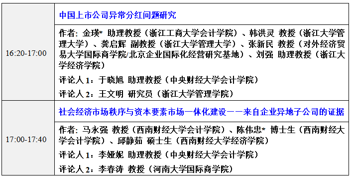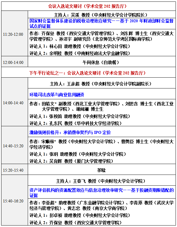 每篇入选论文研讨含论文报告20分钟、论文评论10分钟/人