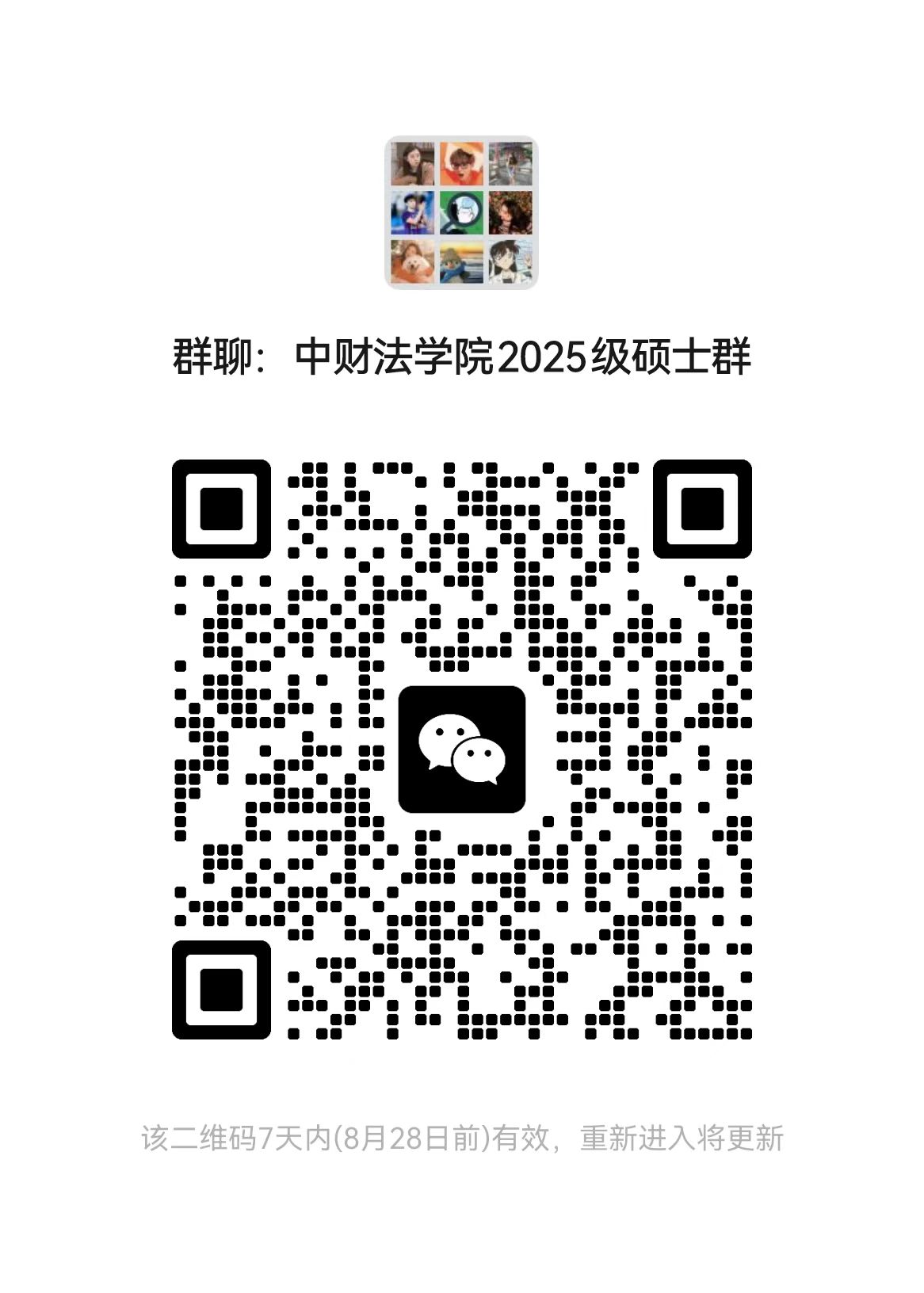 为便于2025级硕士新生工作的顺利开展,特建立“中财ylzz总站线路检测中心2025级硕士生群”,请大家及时扫描下方二维码实名制入群!